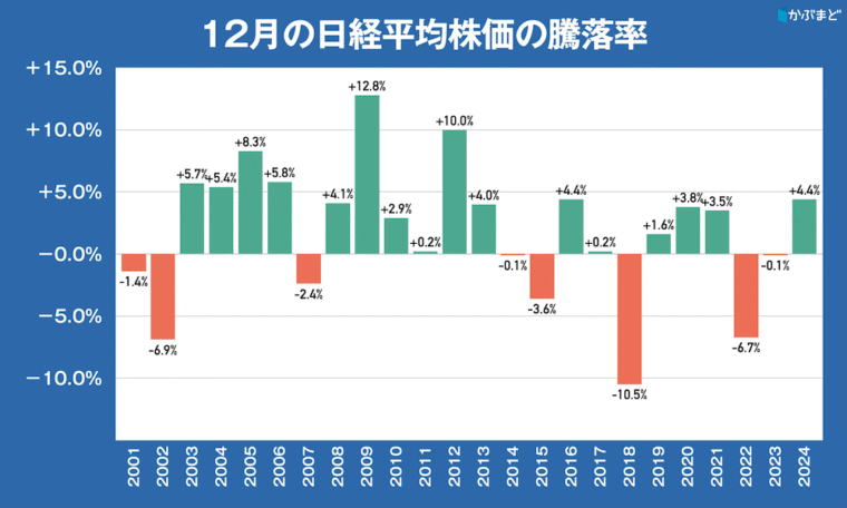 12月は月末に向かって株価が上昇しやすい月です。いわゆる「掉尾の一振(とうびのいっしん)」「年末ラリー」が起こりやすい時期として知られています。