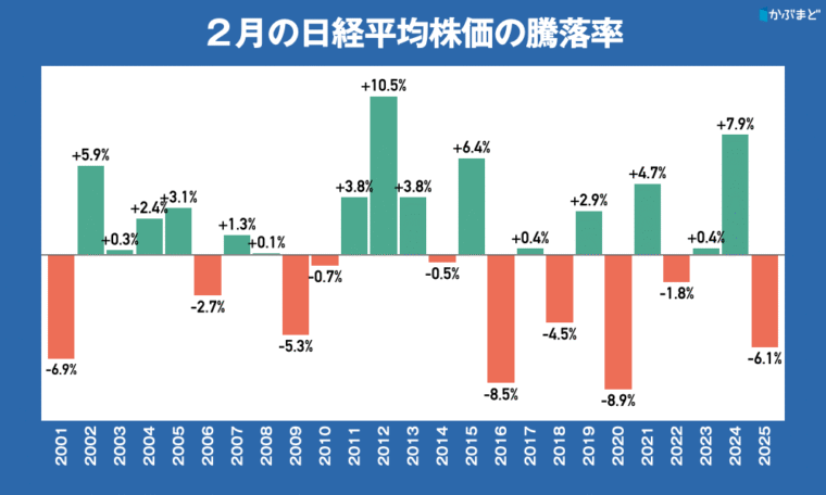 (過去の2月の日経平均株価のチャートはこちら)。