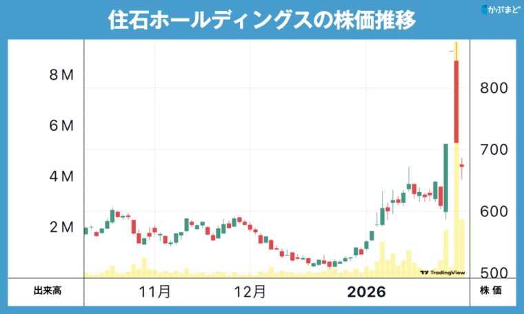 【第100位】住石ホールディングス<1514> ・ ・ ・ ・ ・ +26.7%(530円→672円)
