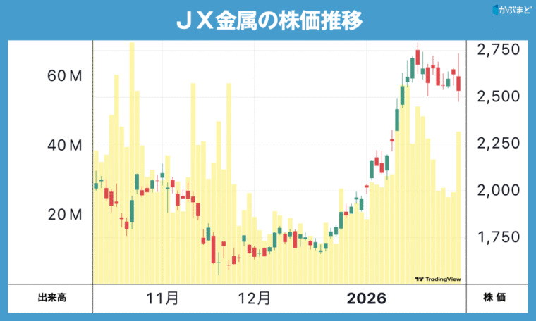 【第10位】JX金属<5016> ・ ・ ・ ・ ・ ・ ・ ・ ・ ・ ・ ・ ・ ・ 1.73兆円(6657億円)