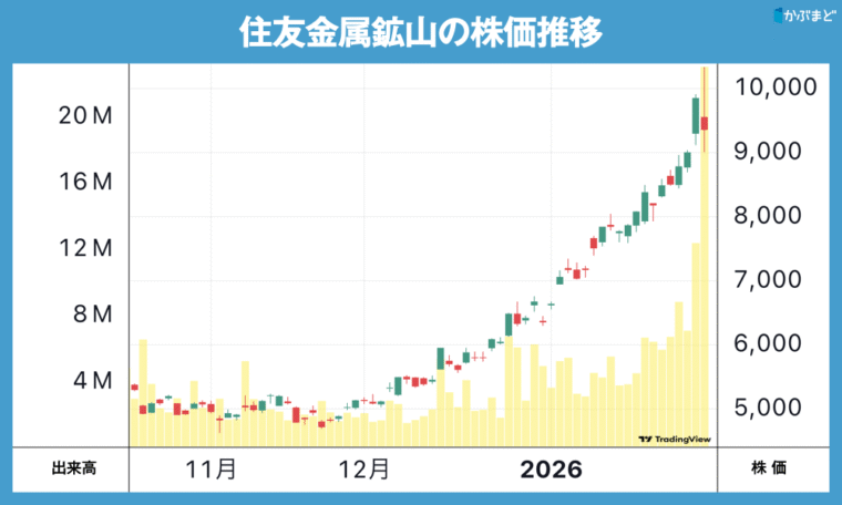 【第36位】住友金属鉱山<5713> ・ ・ ・ ・ ・ ・ ・ ・ ・ ・ +47.2%(6,357円→9,360円)