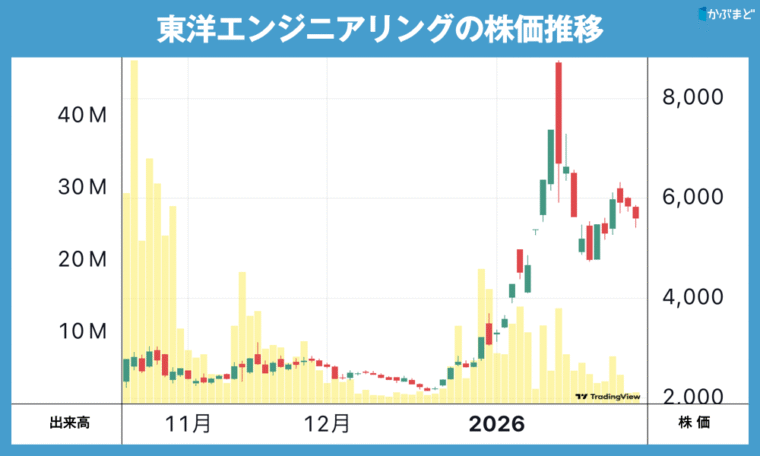 【第11位】東洋エンジニアリング<6330> ・ ・ ・ ・ ・ +81.8%(3,080円→5,600円)