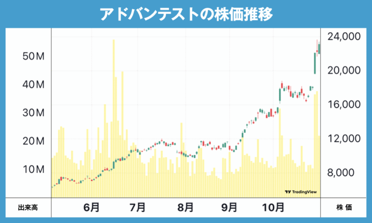 アドバンテストは筆者にとっても思い出深い銘柄です。株式投資を始めた頃、毎日のようにそのチャートを手書きしていたほど。個人的にも、日本株市場を語る上で絶対に外せない銘柄なのです。